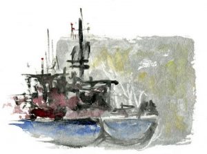 Reflets d’or et d’argent, lieux où rien n’est gris, où tout est lumière. Chaque couleur est particule de lumière, promesse de trésor enfoui ou posé sur une terre inconnue, dans un port connu, trop connu que l’on a oublié de regarder et la magie est là, à toucher du doigt…